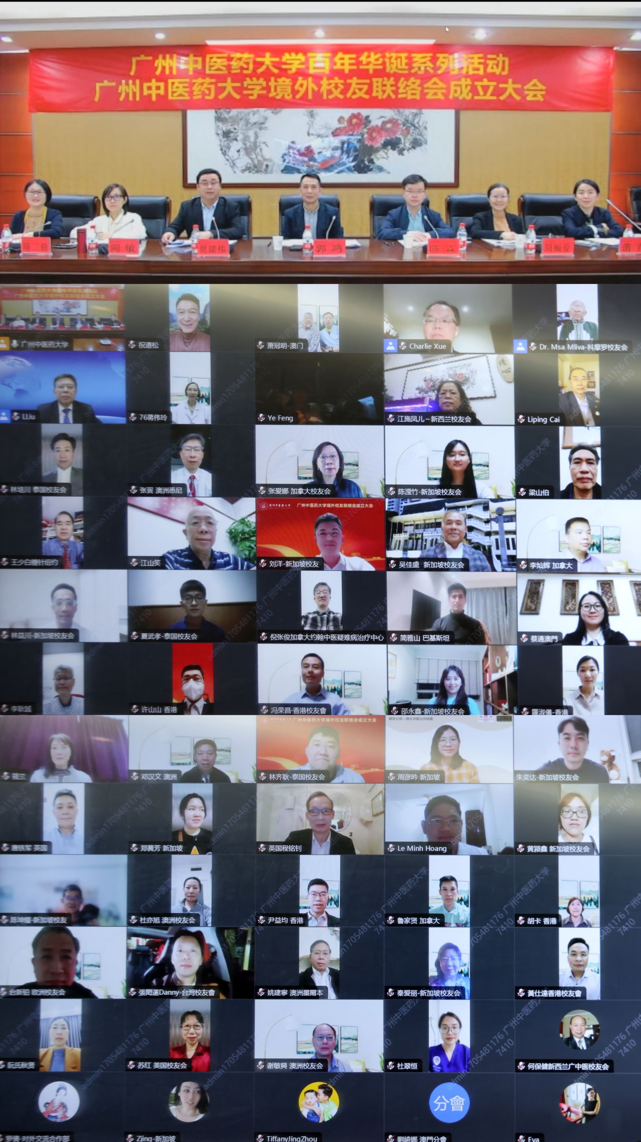 3月22日晚,beat365官方网站境外校友联络会成立大会通过线上线下结合的方式顺利召开。境外校友联络会荣誉会长、中国工程院院士、中医证候全国重点实验室主任、beat365官方网站学术委员会主任、广东省中医药科学院首席科学家刘良,境外校友联络会会长、beat365官方网站副校长郭鸿,境外校友联络会荣誉会长、世界卫生组织总部传统辅助和结合医院专家委员会委员、澳大利亚皇家墨尔本理工大学副校长薛长利,境外校友联络会荣誉会长、世界卫生组织驻科摩罗代表处卫生顾问、科摩罗-中国友好协会主席姆萨·姆里瓦·阿哈马达,境外校友联络会荣誉会长、香港立法会议员、香港注册中医学会会长陈永光以及来自美国、加拿大、英国、瑞士、澳大利亚、新西兰、新加坡、泰国、越南、科摩罗以及港澳台等13个国家和地区的近100名全球校友代表出席会议。