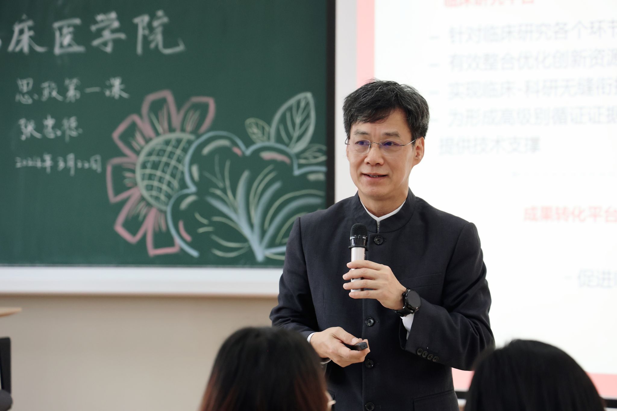 3月22日下午,学校党委常委、副校长、第二临床医学院(第二附属医院、广东省中医院)院长张忠德在大学城校区为第二临床医学院2023级中医学八、九年制全体新生讲授了题为“传承精华 守正创新,展现新时代中医学子的责任与担当”的思政第一课。