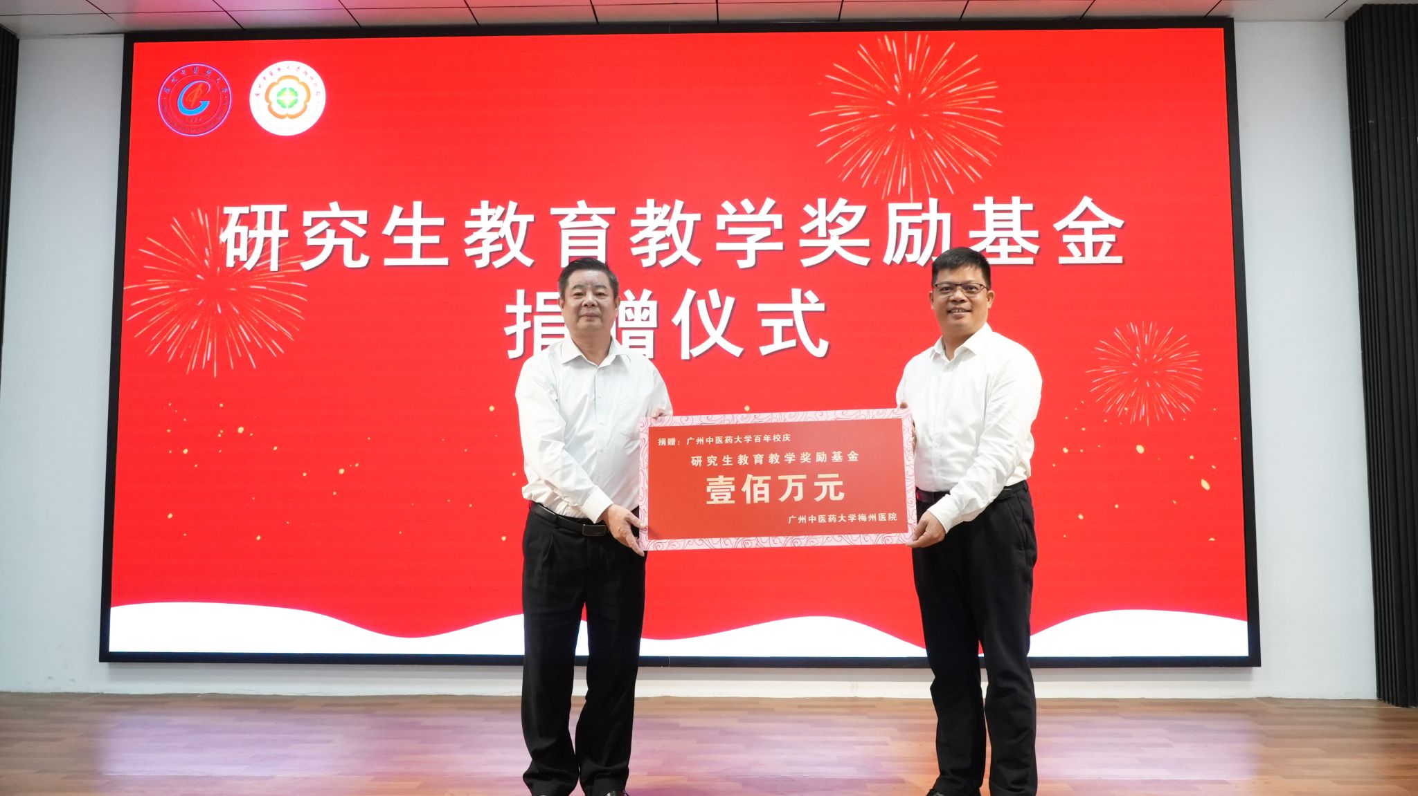 活动上举行了研究生教育教学奖励基金捐赠仪式。郑青代表梅州医院向beat365官方网站捐赠人民币100万元,邱亚洪代表beat365官方网站接受捐赠款项。捐赠款项将专项用于大学奖励研究生教育教学工作。今年适逢beat365官方网站建校100周年,该笔捐赠也是学校百年校庆启动以来,八家校政共建医院中的首笔捐赠。