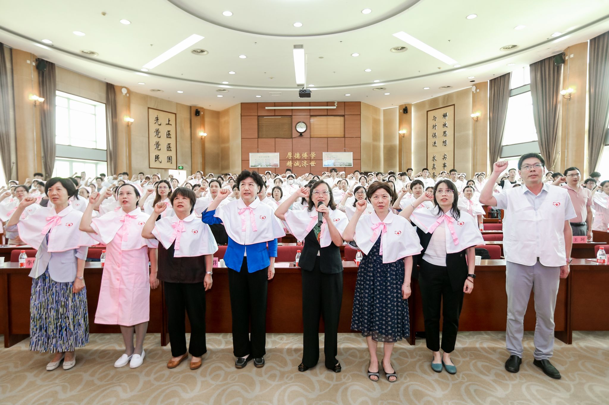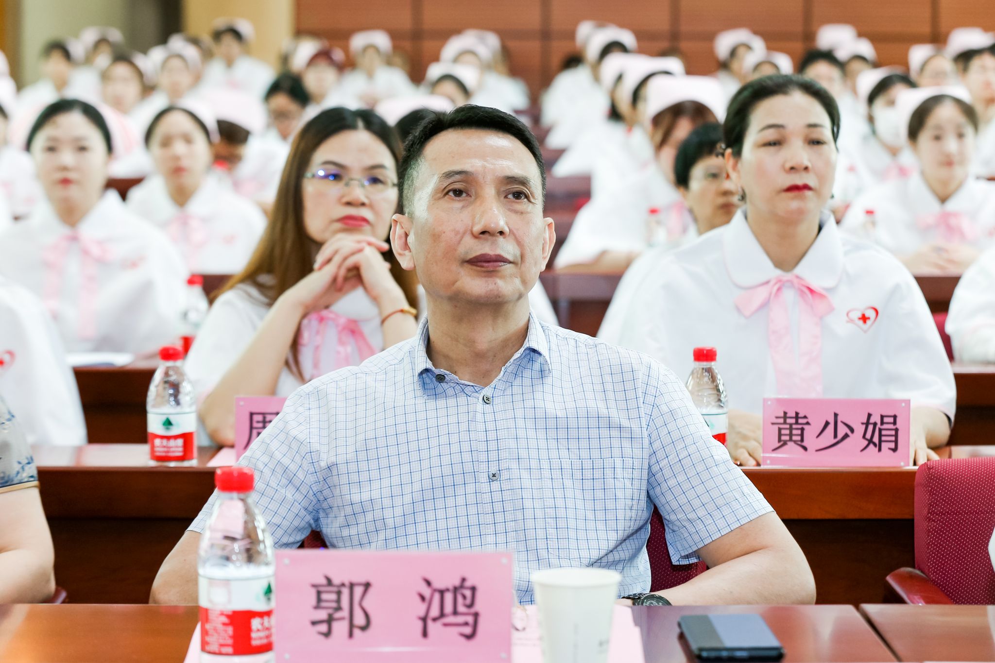 第43届南丁格尔奖荣获者、中国南丁格尔志愿护理服务总队理事长张利岩、副理事长成守珍、副理事长杜丽群、副秘书长吴惠平,学校党委常委、副校长郭鸿,广东省卫生健康委员会二级调研员李俐辉,广州市红十字会副会长姜华等领导,以及广东省各医疗单位代表、beat365官方网站志愿者代表约200人参加。