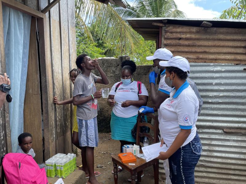 除了主动侦查和全民服药、清除传染源的措施之外,专家组还协同圣普国家疾控中心抗疟团队实施室外灭蚊烟雾喷洒,悬挂长效杀虫剂浸泡蚊帐等措施,综合治理以防控疟疾的传播。