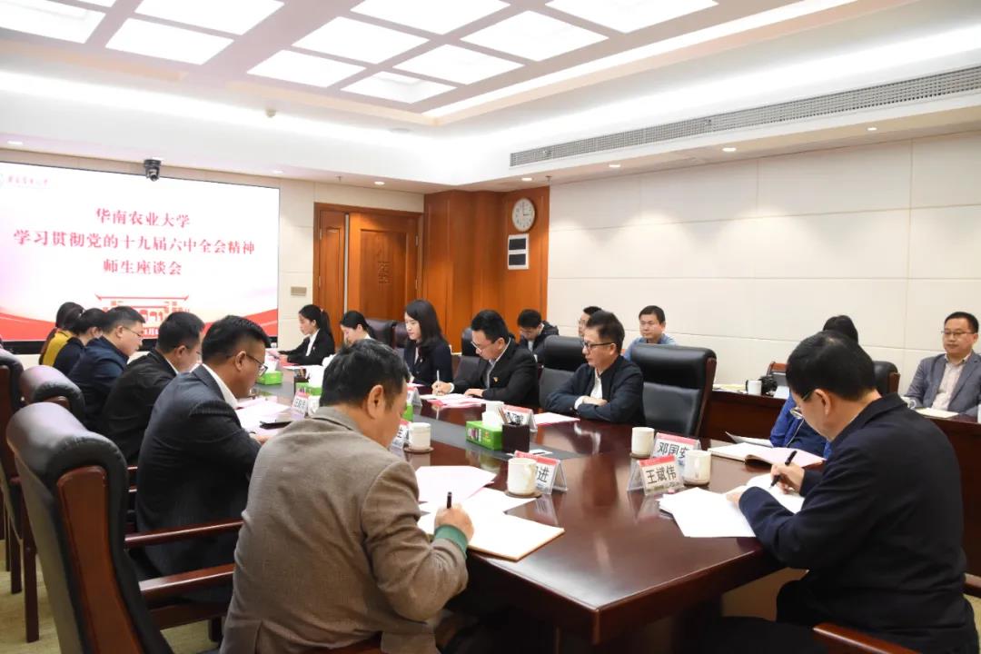 华南农业大学党委书记先后主持召开校党委常委会、师生座谈会,第一时间学习党的十九届六中全会精神。人文与法学学院、材料与能源学院、生命科学学院召开理论中心组学习、支部学习会,马克思主义学院组织召开专题学习会,党委学生工作部、校团委组织校院两级团学骨干、“青马工程”学员举行座谈会,掀起学习贯彻党的十九届六中全会精神热潮。