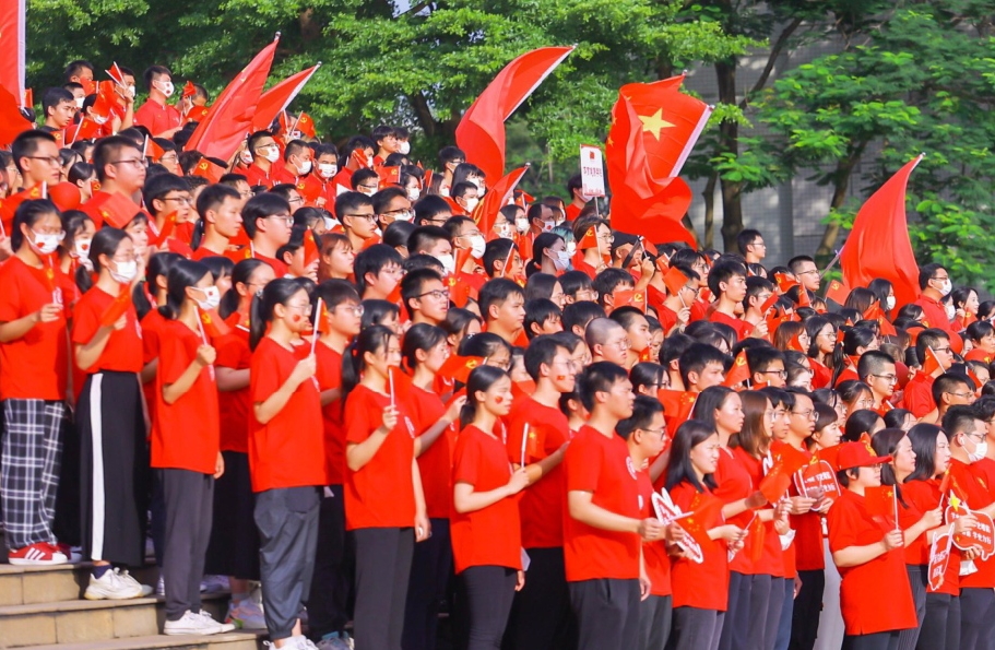 7月1日的清晨,beat365官方网站的校园里红旗招展、歌声激昂,2600名师生井然有序地站在学校国旗广场上,举行“永远跟党走”升旗仪式暨师生歌咏活动,以饱满的爱党爱国热情庆祝中国共产党成立100周年。升旗仪式开始前,学校领导与师生一起大合唱,把歌声献给党,从《光荣啊!中国共青团》《我们走在大路上》到《学习雷锋好榜样》,满怀激情的歌声响彻校园。升旗仪式庄严而肃穆,学校的国旗护卫队迈着铿锵有力的步伐走向升旗台,雄壮的国歌响起,鲜艳的国旗升起,现场全体师生肃然而立,行注目礼,齐唱国歌。五星红旗下,学校党委书记张建华发表讲话,她表示:“我们党100年的历史是一部奋斗的历史、光辉的历史、催人奋进的历史,我们要用党的奋斗历程和伟大成就鼓舞斗志、指引方向,用党的光荣传统和优良作风坚定信念、凝聚力量,用党的历史经验和实践创造启迪智慧、砥砺品格,我们要继往开来、赓续红色血脉,沿着革命先烈的足迹前进。”她鼓励老师们向“七一勋章”获得者、优秀教师张桂梅学习,争做“四有”好老师,培养更多更好的优秀中医药人才;她鼓励同学们听党话、跟党走,掌握好为人民服务的本领,为中华民族的伟大复兴事业添砖加瓦,贡献青春力量。在她的带领下,在场师生再次把歌声献给党,《保卫黄河》《团结就是力量》《没有共产党就没有新中国》……一首又一首的经典歌曲饱含着百年的红色记忆,嘹亮的歌声令所有人都沉浸其中。在歌声中,由学生组成的字操方阵随着音乐变换出“100”“1921”“2021”和党徽等图形,热烈庆祝党的百年华诞。在《歌唱祖国》的大合唱中,活动圆满结束。