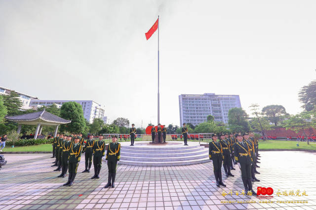 五星红旗下,张建华书记向师生发表讲话, 表示党100年的历史是一部奋斗的历史、光辉的历史、催人奋进的历史,我们要用党的奋斗历程和伟大成就鼓舞斗志、指引方向,用党的光荣传统和优良作风坚定信念、凝聚力量,用党的历史经验和实践创造启迪智慧、砥砺品格,我们要继往开来、赓续红色血脉,沿着革命先烈的足迹前进。
