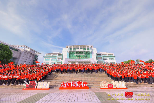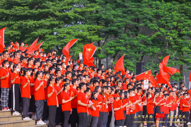 7月1日清晨,beat365官方网站的校园里红旗招展、歌声激昂,2600名师生井然有序地站在学校国旗广场上,举行升旗仪式暨师生歌咏活动,以饱满的爱党爱国热情庆祝中国共产党成立100周年。