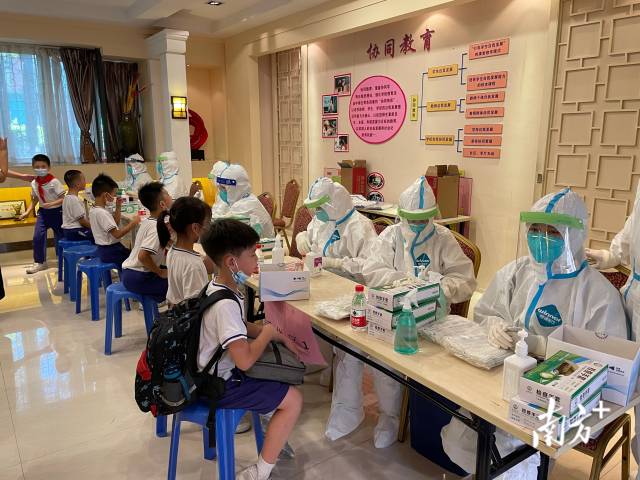 5月27日凌晨0点30分起,广东省中医院26名医护人员在广州市荔湾区新晖学校附近的核酸检测点为学校约1500名师生进行核酸检测标本采集。