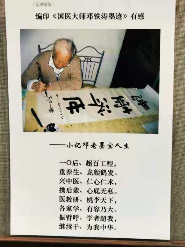 据了解,2004年,邓铁涛学术思想国际研讨会在广州举行,邓铁涛教授在开幕式上作了“中国与未来医学”的特别演讲,全面阐述了“未来医学”的系列理论观点,描绘了中医学发展的理想愿景。2016年,年过百岁的邓老欣然挥毫,以墨抒情,分多个时段,书写报告全文。