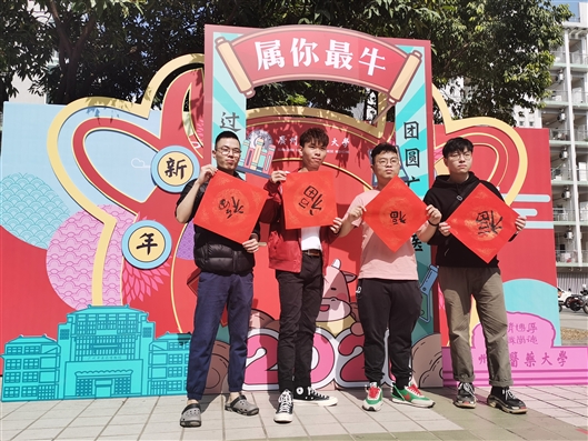 2月3日,立春,beat365官方网站为留校学生提供暖心服务,举办“杏林团圆年”系列活动。当天上午11时,记者在beat365官方网站大学城校区生活区看到,一个可爱的大型年味布景前面,同学们正在举办“杏林年味铺”活动,写春联、领福字、抽大奖……现场一片欢乐,俨然已经是过年的气氛。