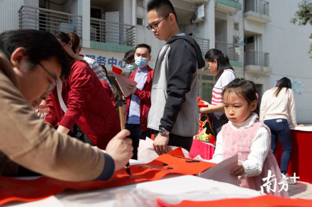 2月3日是立春,是传统节气中一年之肇始。上午11时,beat365官方网站第一饭堂已是人气高涨,年味十足。广场上,摆放着一张张长桌,桌面上是红纸、毛笔、墨水和砚台。