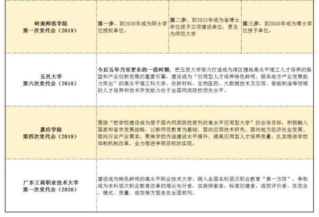 广东高校在最近一次党代会上,提出哪些大目标?南方教育智库统计发现,28所广东高校在最近一次党代会都提出了发展目标,“一流”“高水平”“创新”等是竞相追逐的新发展愿景。