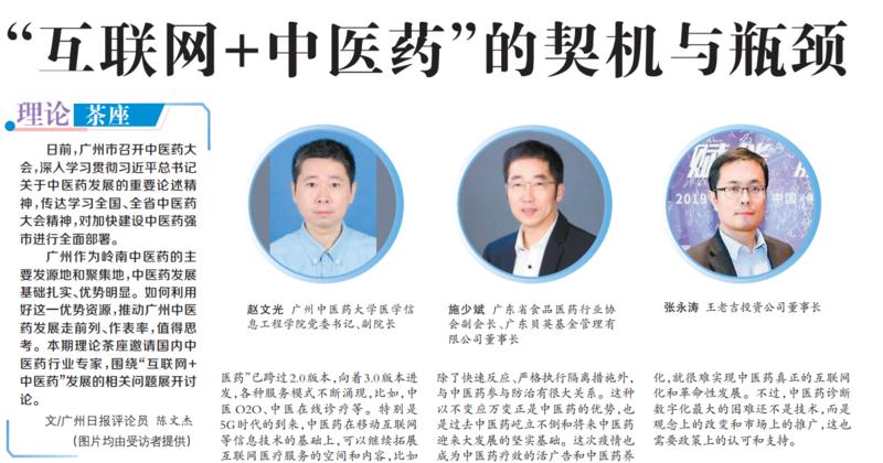 广州日报《理论周刊》:广州发展“互联网+中医药”的优势有哪些?未来可在哪些方面发力?