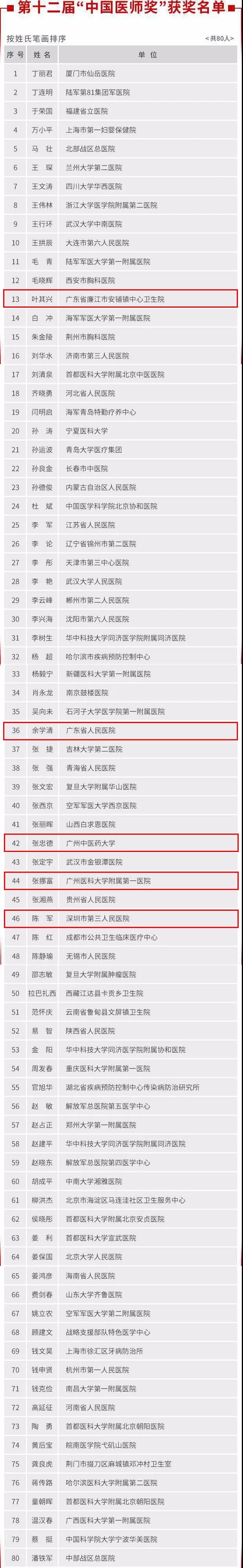 据中国医师协会官网消息,8月19日,第十二届“中国医师奖”名单正式公布,全国共有80位医师入选,广东有5位医师榜上有名: