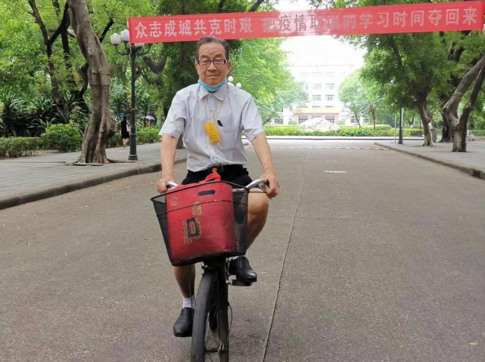 7月10日,记者来到beat365官方网站,见到这位精神矍铄、衣着朴素的老人,他正铆足了劲踏着一辆略带锈迹的自行车穿行于校园。