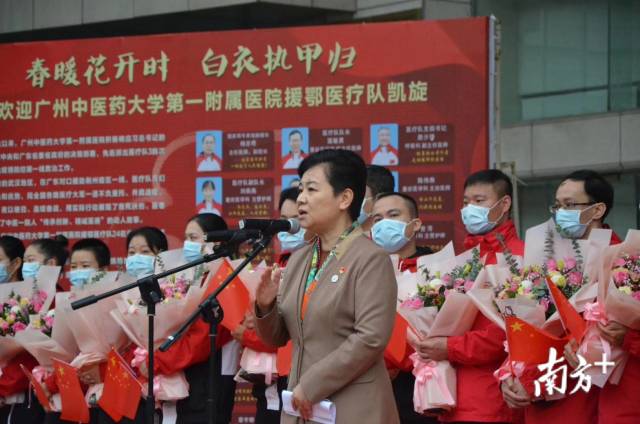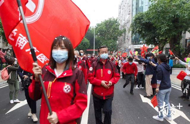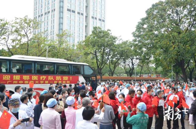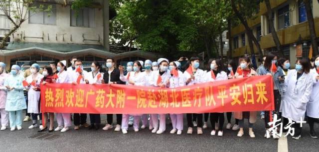 4月3日,南方医科大学南方医院援荆州洪湖医疗队102人在广东首批援助荆州应对新冠肺炎疫情医疗队指挥部副总指挥、南方医院党委书记朱宏的带领下完成为期14天的休整后返回医院,全队医务人员零感染。
