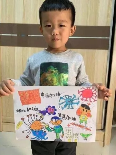 临行前收拾行李的短短几小时,五岁的儿子专门画了一幅画送给赵锋利,孩子说爸爸要去打怪兽了!画上面还写有“爸爸加油!湖北加油!中国加油!”这幅画赵锋利一直带在身边。
