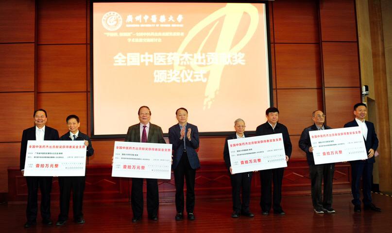 与会人员专题学习了《意见》精神,广中医战略合作伙伴,固生堂中医连锁管理集团董事长涂志亮作了相关的专题汇报。同时,在全国中医药杰出贡献奖获得者颁奖仪式上,涂志亮为四位获奖者或代表每人颁发了 10 万元现金奖励。