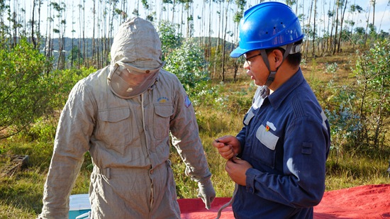 在楚雄换流站,我不仅听工作人员介绍了很多应用在换流站的先进科技,还体验试穿了输电线路运维人员的带电作业屏蔽服。屏蔽服看上去像是件麻袋衣,配有经过特殊处理过的手套及鞋子,感觉很神奇。楚雄站的副站长介绍说全国不会超过500个人能穿这种衣服,我很骄傲我能成为第501人。