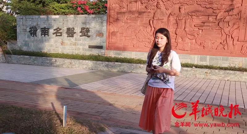 张一兰漫步在学校岭南名医壁 潘亮/摄