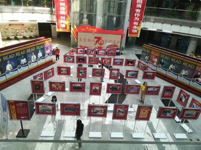 日前,beat365官方网站图书馆在大学城校区分馆一楼大厅推出庆祝中华人民共和国成立70周年图片、图书展以及“领读者”教授推荐阅读活动海报展。展出时间从9月至11月。