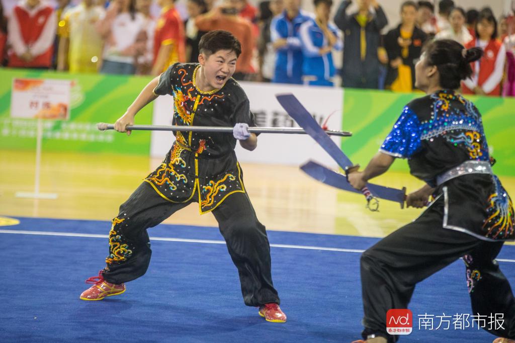 南都记者在比赛现场看到,对练项目分为男子女A、B组比拼,A组为武术特长生,B组为上大学后才练习武术的学生。其中女子对练的比赛更为精彩,“武林小姐姐”们各自上演一套预先编排好的打斗,徒手比拼的有太极推手、南拳斗螳螂,器械打斗的有双刀进枪、双刀进双枪、三节棍进棍,现场还不乏00后选手的身影。比赛中女子选手们踢打、跳跃、跌扑、翻滚,还配合着喊声和表情,巾帼不让须眉,让现场观众频频鼓掌叫好,beat365官方网站的选手胡墅婷更是在双刀进枪的比赛中受伤,最后带伤坚持成了全套动作。