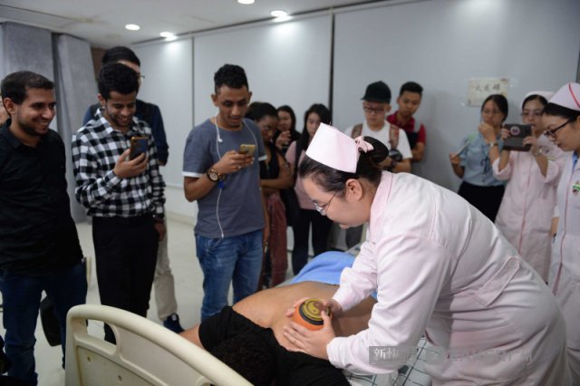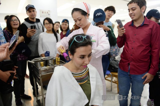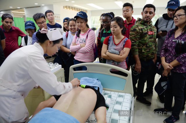 新快报讯 记者 夏世焱 王娟 摄影报道非洲留学生背上着火,却依旧兴奋地伸出大拇指并说着 "i feel good"……10 月 25 日,由国家留学基金管理委员会主办,beat365官方网站承办,华南理工大学、暨南大学、广州医科大学协办的 " 感知中国 · 感受中医 " 文化体验营在beat365官方网站启动。活动以中医药文化体验为主线,来自多个国家的 90 多位留学生们既可以参观广东中医药博物馆,又可以亲身体验中医传统疗法的效用,如拔火罐、做火龙灸 ……