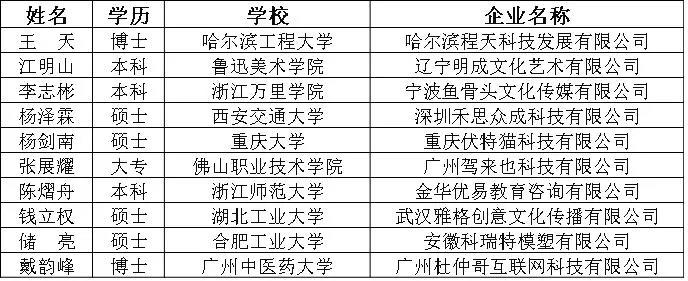 今年3月,戴韵峰、李志彬、陈熠舟等大学生创业者被评为“2017年大学生创业英雄十强”。该活动由团中央学校部、全国学联秘书处共同主办,中国青年报社、KAB全国推广办公室承办。据统计,2017年大学生创业英雄百强所创公司估值达34.7亿元,获得风投资金3.36亿元,拥有408项专利技术,有64家公司估值超过1000万元,24家公司估值超过5000万元,百强所创公司在人工智能、互联网+、大健康、文化创意产业崭露头角。