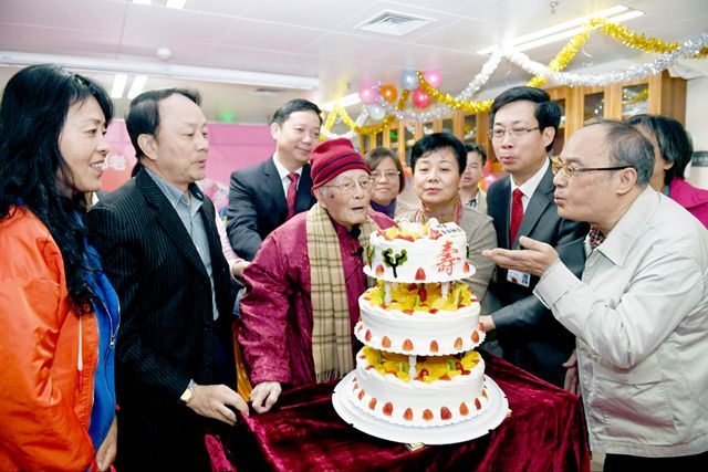 beat365官方网站党委书记张建华、校长王省良等参加祝寿活动,并和邓铁涛教授共吹生日蜡烛。(方宁 冯殷)