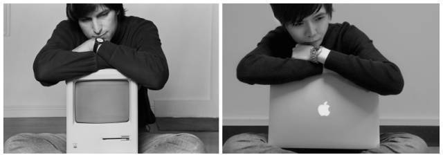 朱楚杰的朋友圈里有一张他双手环抱苹果电脑Macbook Pro的相片,这个姿势和相片旨在致敬乔布斯。1984年乔布斯推出苹果电脑Macintosh时,摄影师Norman Seeff为乔布斯拍摄了一张双臂环抱苹果电脑的黑白照片。2015年朱楚杰摆拍的这张照片中,他穿着跟乔布斯同款的黑色高领毛衣,简单的牛仔裤,一样感触而坚定的眼神。他在朋友圈里写到:跨越历史的照片——Steve Jobs&Jason Chu 。