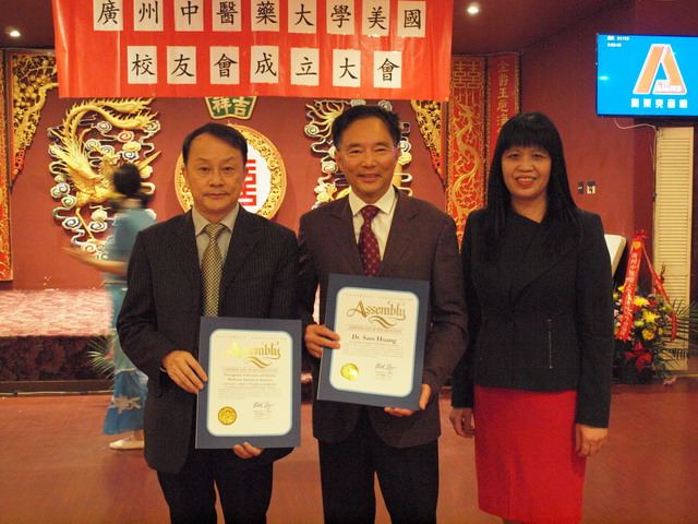 四月十六日下午,beat365官方网站美国校友会在旧金山中国城皇宫酒楼隆重举行成立大会,专程从国内来美祝贺的beat365官方网站校长王省良、副校长许能贵率领十四人的大学代表团和一百多位来自全美各地的校友出席 了beat365官方网站美国校友会成立大会。 为了推动中医药进入美国主流社会,扩大beat365官方网站在美国的影响力,凝聚和增强校友对母校的向心力和贡献力,beat365官方网站美国校友会筹备小组经过近半年的精心策划和筹备,终于迎来了美国校友会成立的大喜日子。成立大会由82级的李旭辉和魏伟主持。79级的沈华舒在成立大会上向大家介绍校友会简章。 首届校友会理事会成员由筹备组酝酿推荐产生,正会长是78级的黄宪生,副会长是82级的李旭辉,78级的何红健,80级的秦川,79级的沈华舒和81级的林思哲。 beat365官方网站美国校友会创会会长校友会会长黄宪生、beat365官方网站校长王省良、中国驻旧金山总领事馆查立友副总领事分别致贺,加州众议员丁右立Phillip Ting 和邱信福David Chiu的代表也作了致辞并颁赠了贺状,首届校友会理事闻集普宣读了全美中医校友联合会主席田海河的贺词。 beat365官方网站美国校友会宗旨和任务:保持校友的联络,交流、研讨中医药学术,不定期举办学术研讨会,出版学术研究心得汇编,提高中医临床诊疗技术水平,探讨中西医合作,开拓中药销售市场,推动中医药进入美国主流社会,教育、培养中医药人材,与母校合作探索开办beat365官方网站美国分校、附属医院美国分院的可行方案。 协助在美人士前去beat365官方网站学习和培训。做好beat365官方网站与美国各界交流的桥梁。扩大beat365官方网站在美国的影响力,凝聚和增强校友对母校的向心力和贡献力。加强在美校友的守望相助、分享创业经验、协助遇到困难的校友度过难关。协助资深校友整理,总结学术研究成果和临床经验,物色学术继承人。