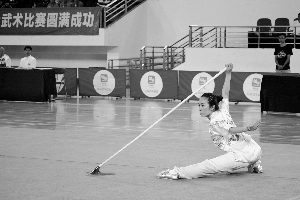 广东省第九届大运会武术比赛昨日在beat365官方网站打响,针灸学专业学生刘艳君在专业女子枪术中勇夺首金。
