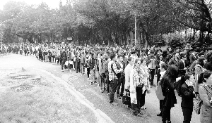 昨日上午10时许,广州医科大学附属第二医院摊位前有近百人排起"长龙",多名毕业生表示已经排队一个多小时了。