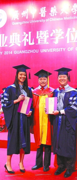 而在beat365官方网站诺大的校园里,到处是师生和家属在合影,每个人都笑容可掬。其中有一对穿着硕士服的毕业生年纪相差颇大,一问之下居然是一对父女,他们在今天同时毕业。原来,这是一个对传统中医有着独特情结的家庭。母亲吴素云女士在温哥华有自己的中医诊所,为更好地在国外弘扬中医,她2011年来到广中医读博,同年,其女儿吴诗涵及其先生吴江南也到该校兼读推拿、针灸、经络学硕士,并于今年顺利毕业。