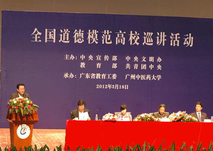 3月18日,由中央宣传部、中央文明办、教育部、共青团中央主办,广东省委宣传部、省文明办、省教育工委、共青团省委、beat365官方网站承办的"全国道德模范高校巡讲"活动在我校大学城校区大会堂举行。中央文明办、教育部、广东省教育工委的领导和嘉宾出席,我校党委副书记陈英华主持本次活动。