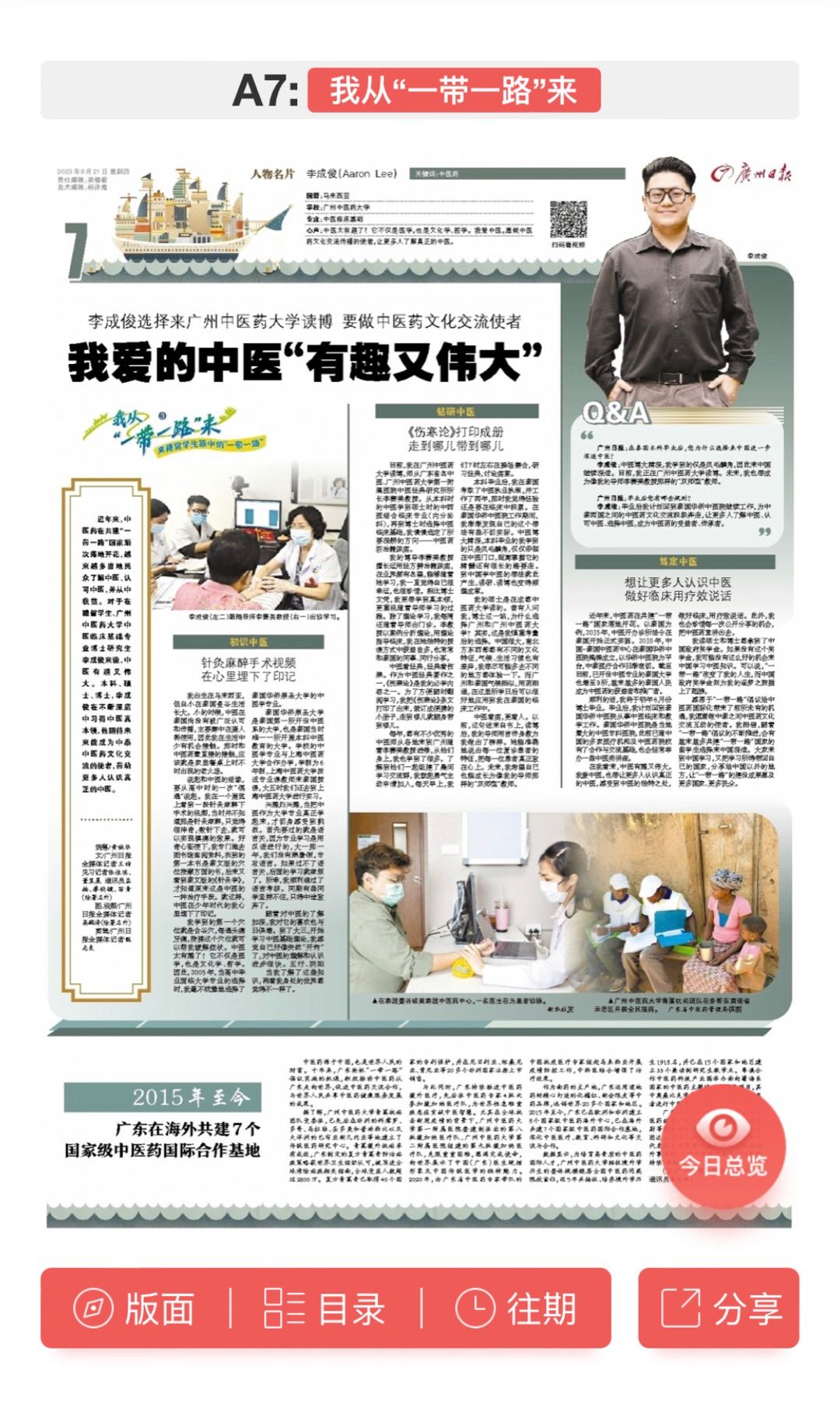 广州日报(20230921):马来西亚留学生李成俊:我爱的中医“有趣又伟大”