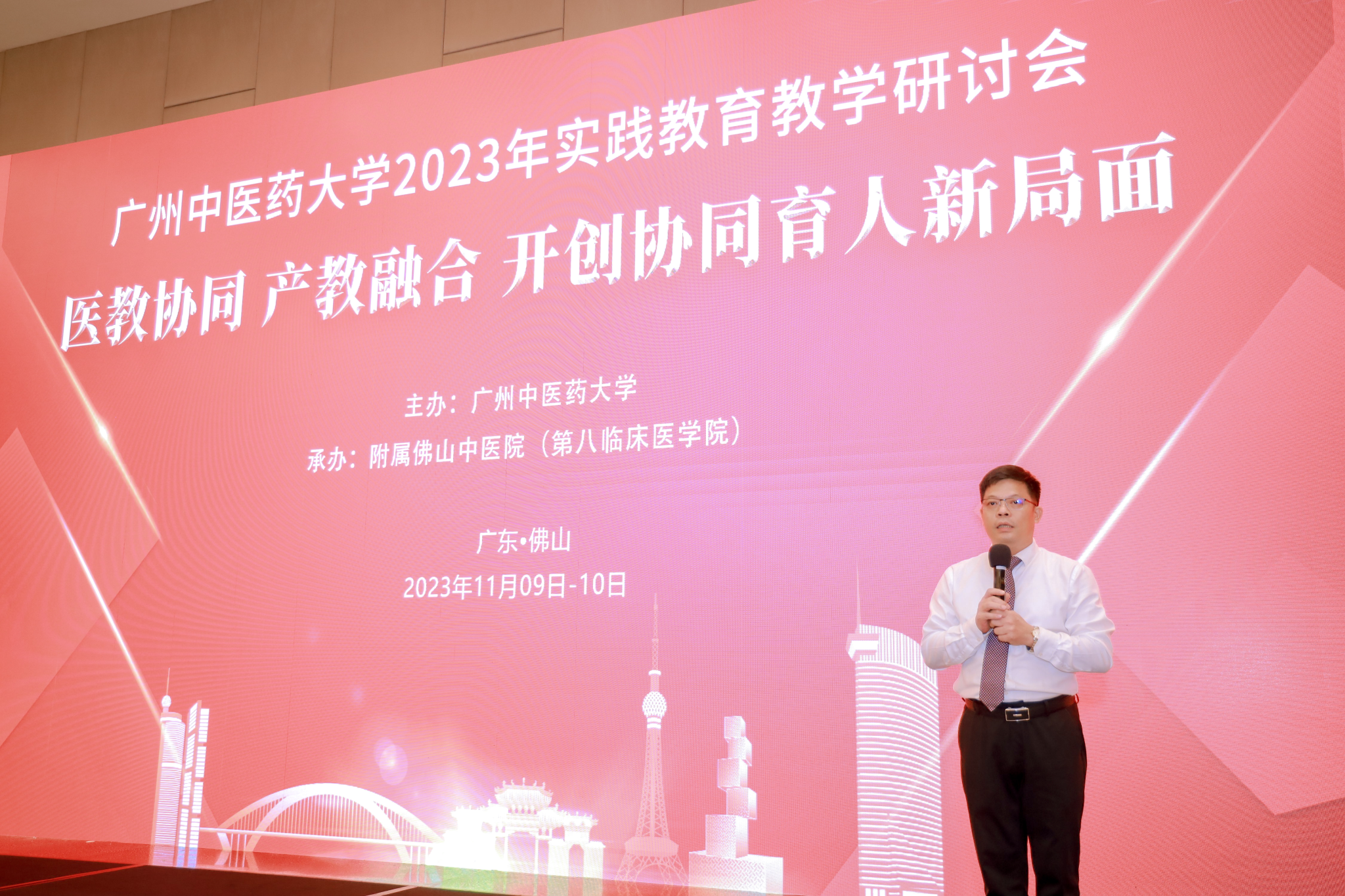 11月9日至10日,beat365官方网站召开以“医教协同 产教融合 开创协同育人新局面”为主题的2023年实践教育教学研讨会,认真总结交流了近三年来我校实践教育教学工作经验,研讨了新形势下实践教育教学改革面临的问题和解决思路。学校党委副书记邱亚洪、副校长刘中秋出席会议并讲话。广东省中医药局科教处李文波副处长、佛山市卫生健康局吴永科副局长出席。