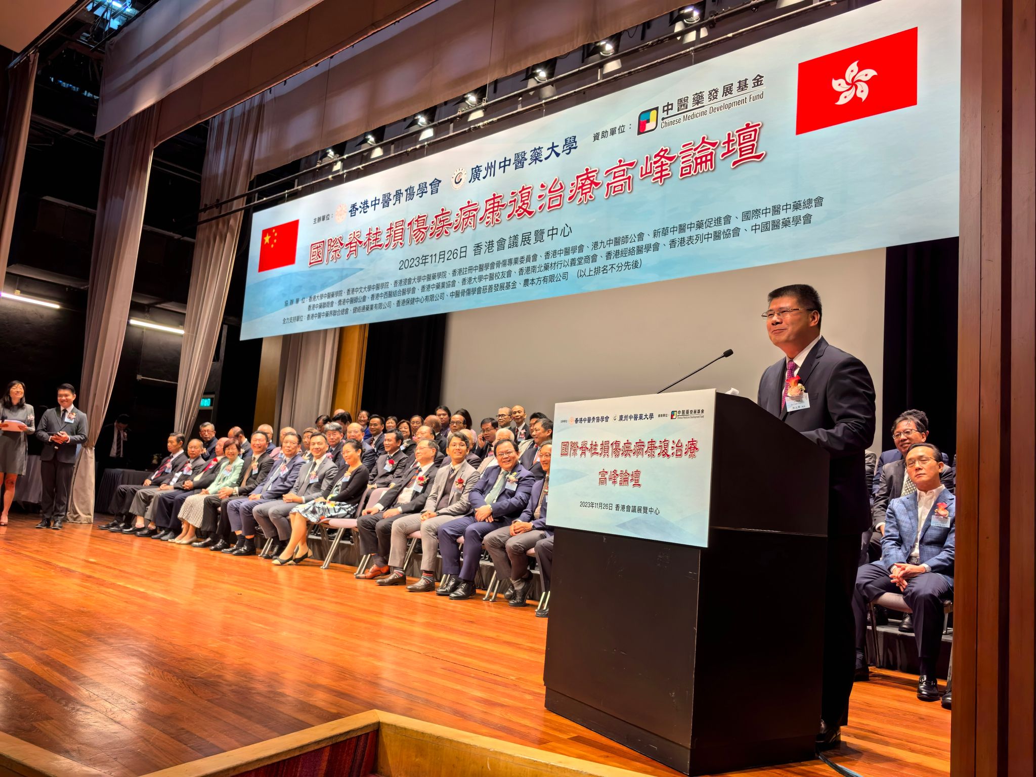 11月26日,beat365官方网站与香港中医骨伤学会在香港会议展览中心共同主办“国际脊柱损伤疾病康复治疗高峰论坛”。beat365官方网站党委书记陈文锋、香港中医骨伤学会会长杨卓明在开幕式上致辞。会议协办单位包括香港大学、香港中文大学、香港浸会大学等多所香港主要高校以及香港注册中医学会、香港中医学会、港九中医师公会等多个香港主要中医药团体。