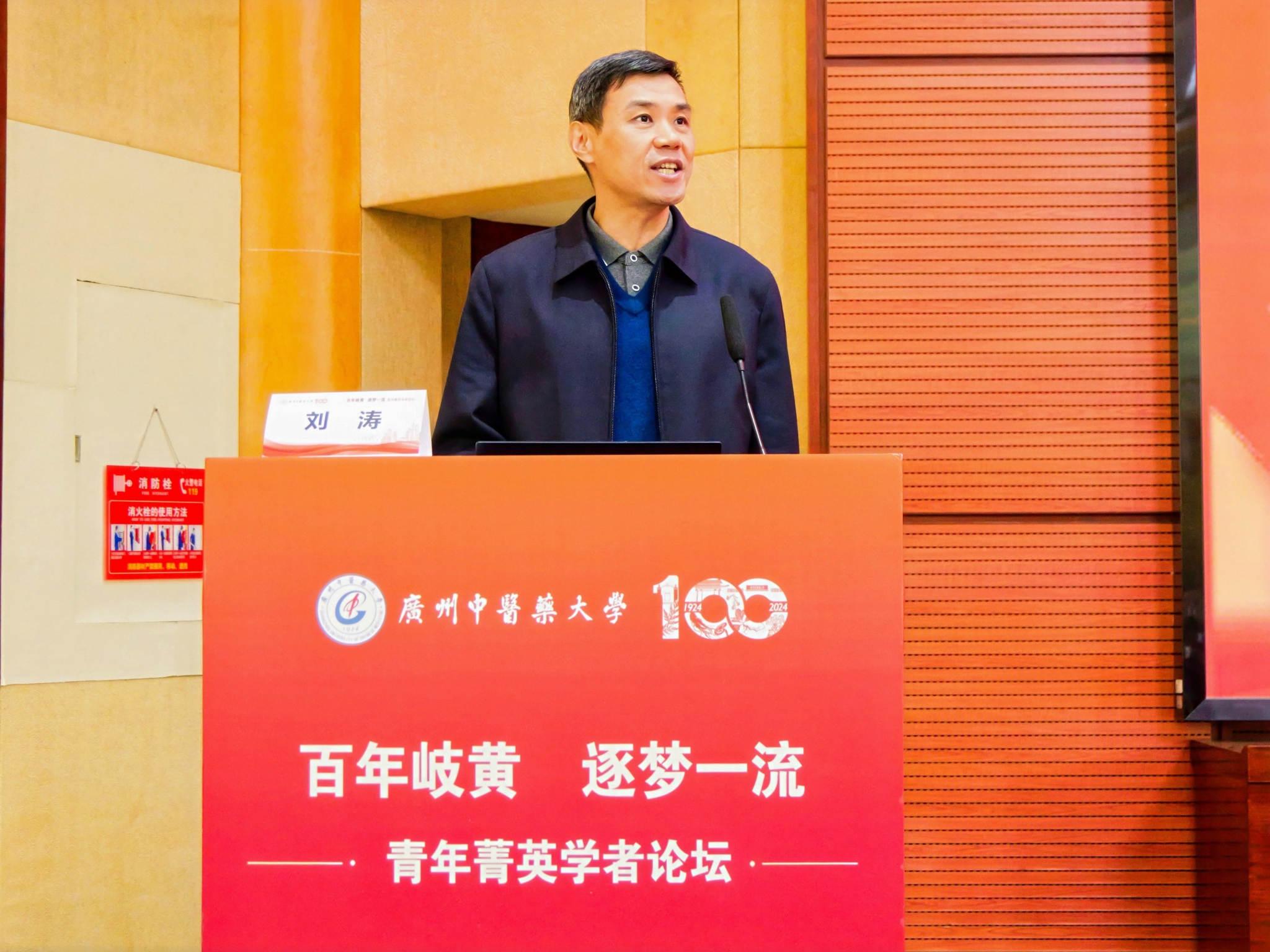 刘涛在致辞中指出,本次“百年岐黄 逐梦一流”青年菁英学者论坛的主题与广东省建设中医药强省的战略定位高度一致。他希望学校聚焦新一轮中医药强省、粤港澳大湾区中医药高地和国家中医药综合改革示范区“三大任务”建设,为中华传统医学的传承与发展贡献力量,推动中医药现代化、标准化、产业化、国际化进程。