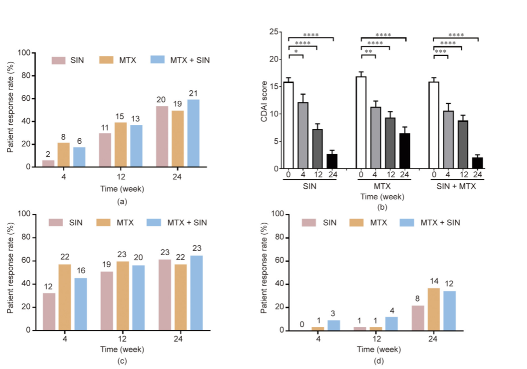 《Engineering》是中科院JCR期刊分区1区期刊,在全球工程综合期刊排名第一,2021年影响因子为12.834。正清风痛宁(SIN)是从中药青风藤中提取出来的单体成分,与同类型产品相比较,有效成分清楚,疗效确切,毒副作用小,且价格低廉。从1992年至今,刘良院士团队进行了一系列正清风痛宁临床、药理、药物制剂等相关研究,是目前唯一被纳入中国国家医保目录和基本药物目录双目录的治疗类风关单体药物。在本研究中,研究人员首次通过前瞻性、双盲双模拟的随机对照多中心临床试验,开展了正清风痛宁单药治疗类风湿性关节炎的临床有效性与安全性研究,结果表明正清风痛宁与甲氨蝶呤单药疗效相当,正清风痛宁与甲氨蝶呤联用较正清风痛宁、甲氨蝶呤单用效果更好;在不良反应发生方面,正清风痛宁单药治疗组转氨酶升高的不良事件发生率远低于甲氨蝶呤组。结果为正清风痛宁治疗类风关的临床应用提供了高质量临床研究证据。
