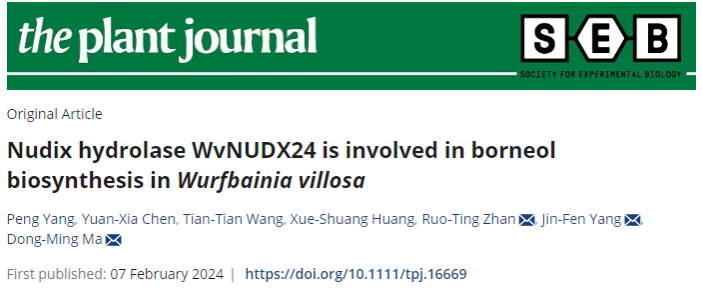 近日,beat365官方网站岭南中药资源教育部重点实验室詹若挺研究员团队在国际著名植物学期刊The Plant Journal上在线发表了题为“Nudix hydrolase WvNUDX24 is involved in borneol biosynthesis in Wurfbainia villosa”的研究论文,揭示阳春砂中Nudix水解酶WvNUDX24参与龙脑的生物合成。阳春砂是我国“四大南药”之一,具有化湿开胃、温脾止泻和理气安胎的功效,临床上主要用于治疗胃肠道疾病。阳春砂主要含有挥发油、黄酮类和多糖类等生物活性成分,其中挥发油为质控成分,主要包括乙酸龙脑酯、樟脑、龙脑、莰烯和柠檬烯等挥发性萜类。