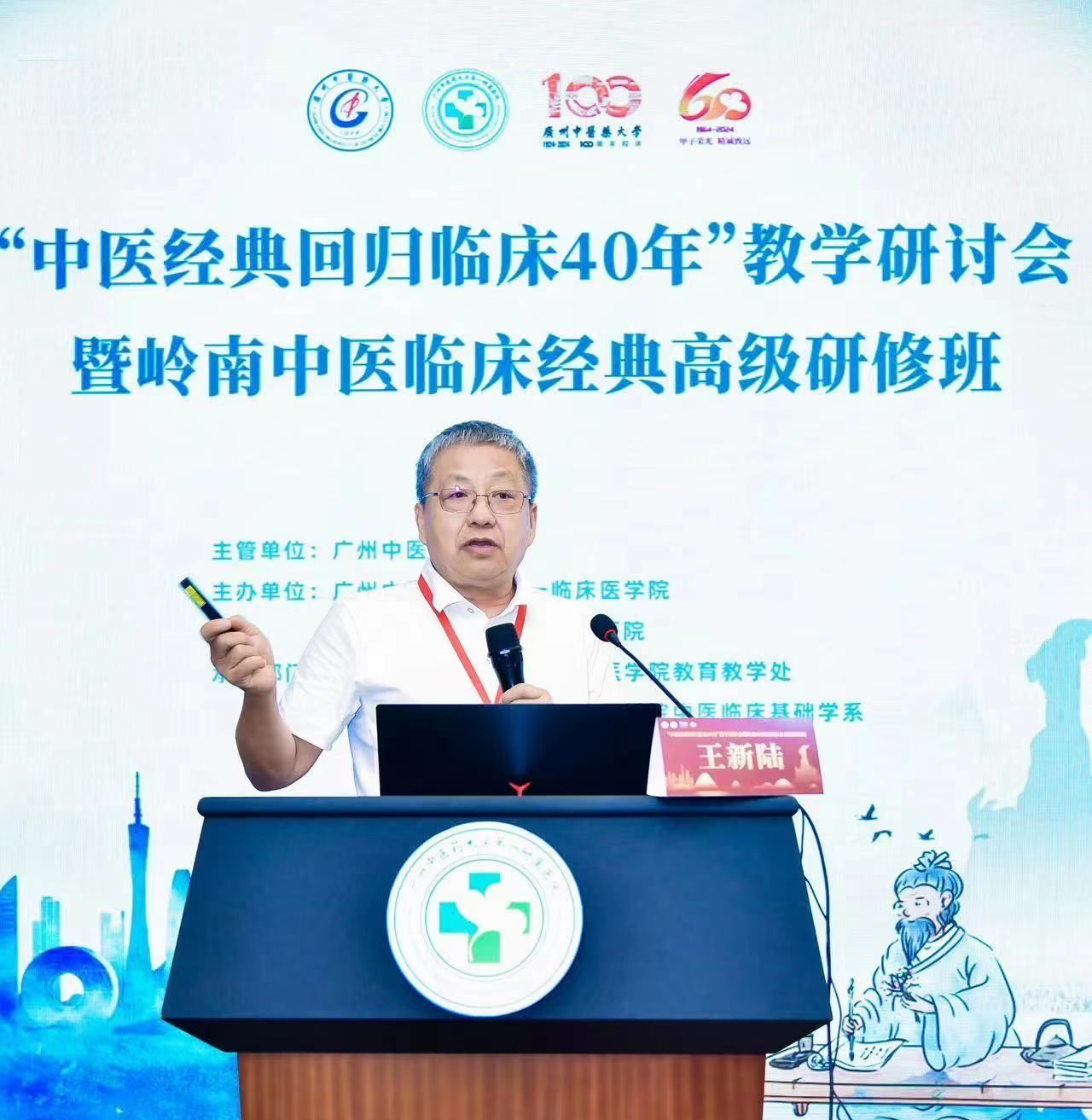 山东中医药大学原校长、国医大师王新陆教授作《经典教学之我见》专题报告,他将经典教学凝练成本真、直观、简捷、易会、实用五个方面,提出中医经典教学应化繁为简,教学相长,要注重经典与临床实践相结合。